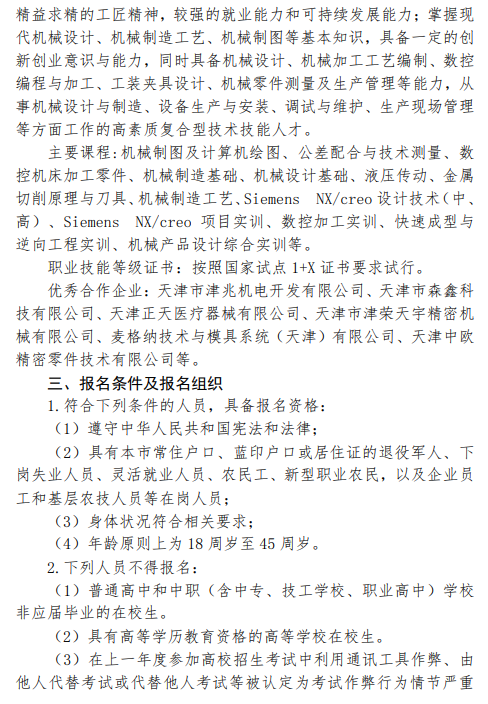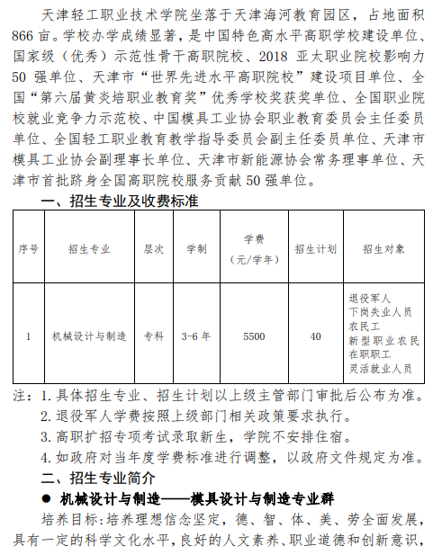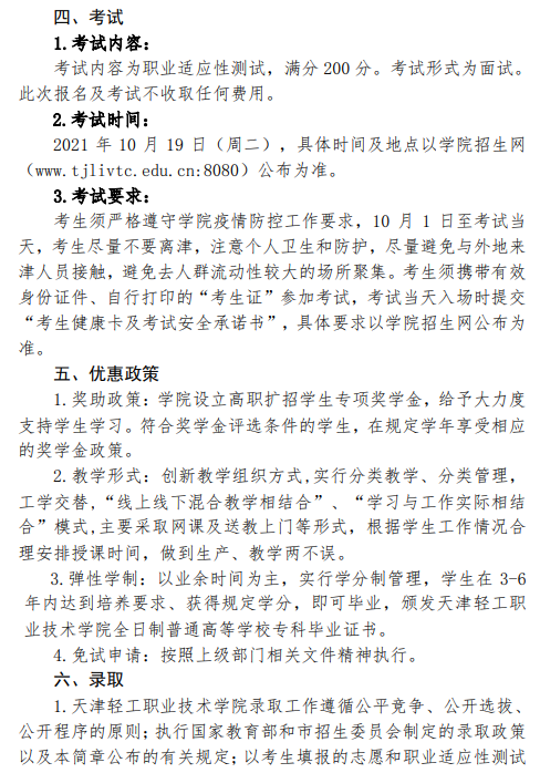 天津轻工职业技术学院2021年高职扩招专项考试招生简章